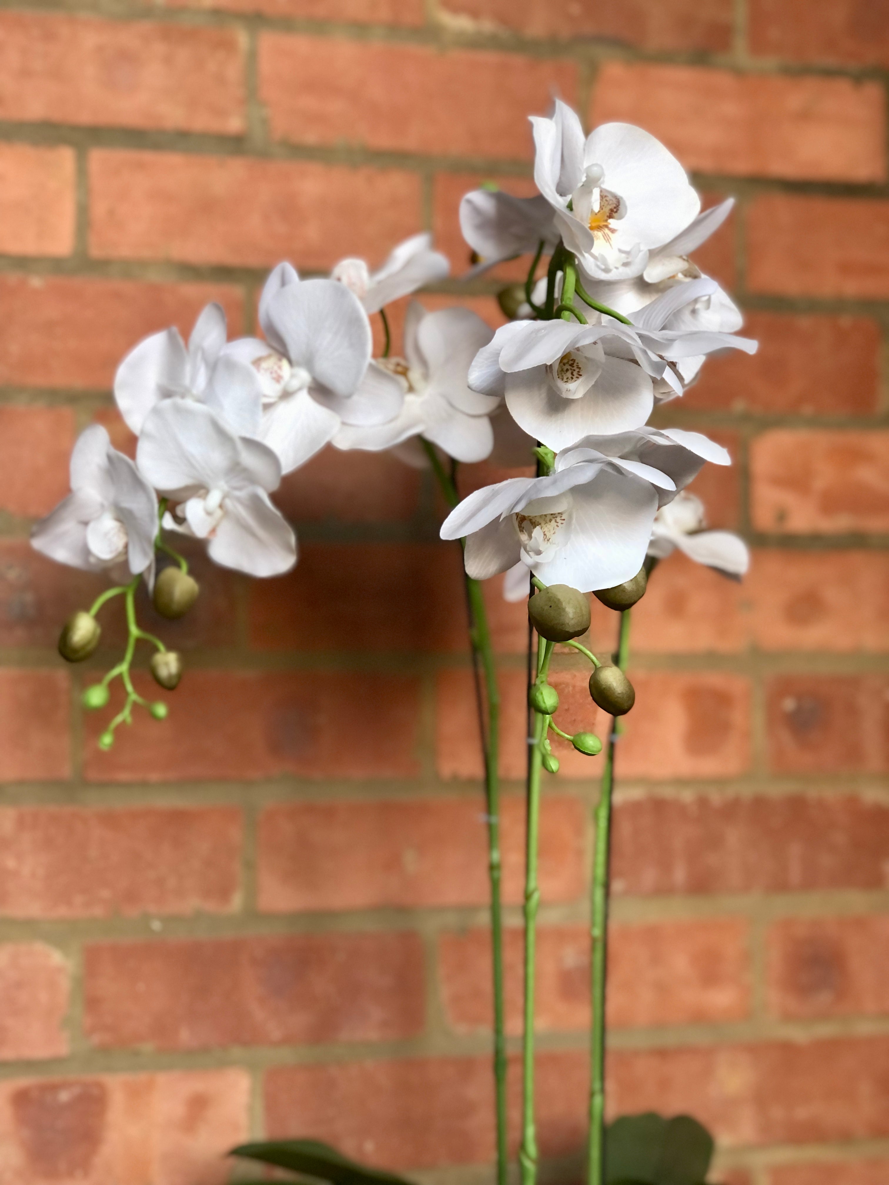 Real Touch Artificial Phalaenopsis Orchid Plant In White Dimpled Pot Artificial Orchids